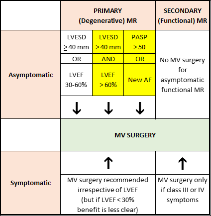 Note: For yellow boxes, mitral valve surgery is recommended only if